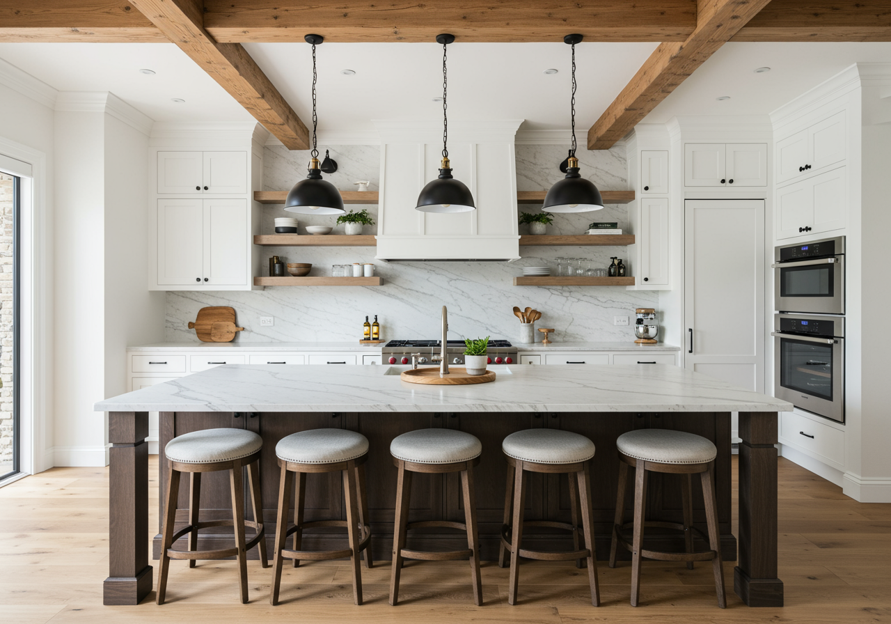 Some features of an updated kitchen include granite counters, high-quality stainless steel appliances, double kitchen sinks, large and stylish cabinets, and a kitchen island. Granite counters and stainless steel appliances make the area look luxurious, while double sinks make kitchen work smoother and easier. Meanwhile, storage is a big deal in a kitchen, making cabinets and drawers a must-have, and